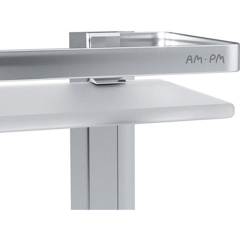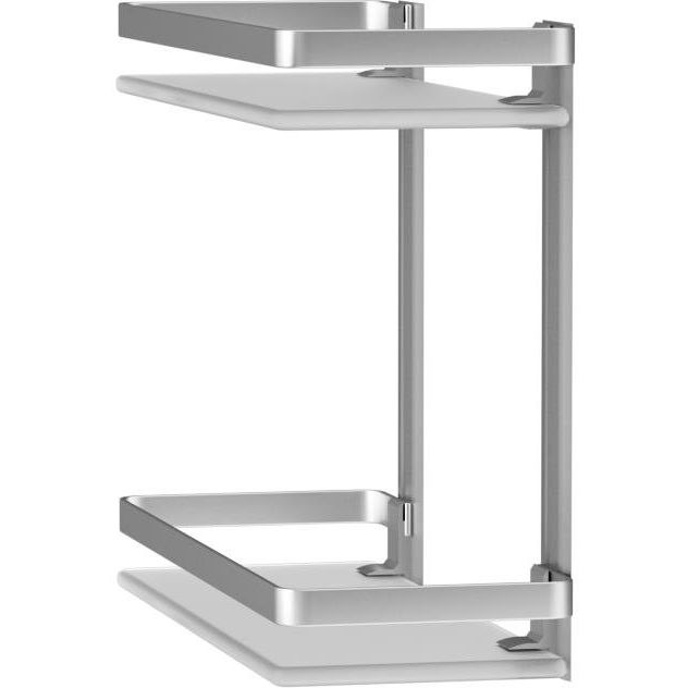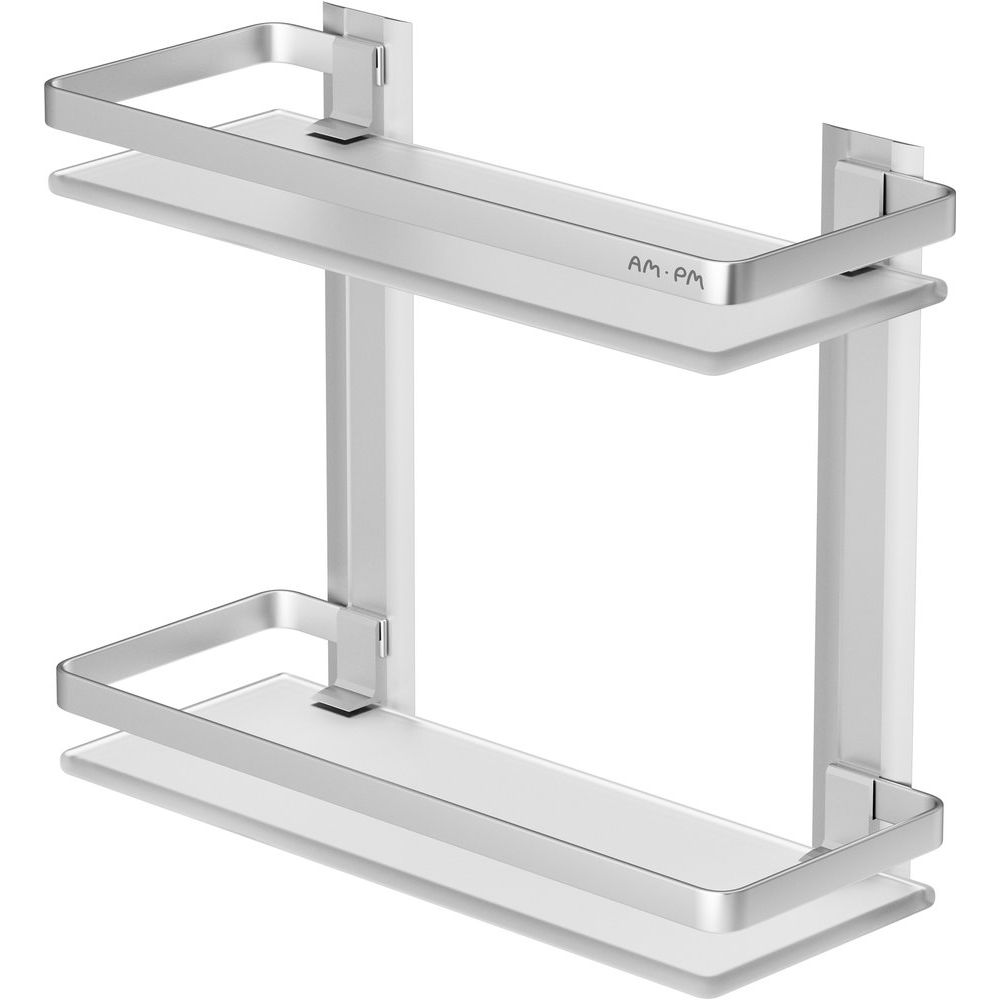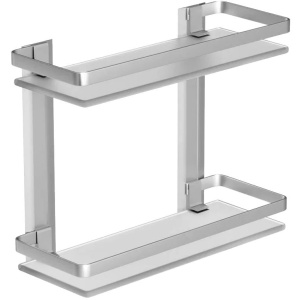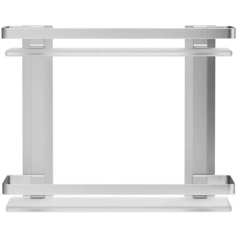 Полка имеет размеры 32x13x27.5 см, что позволяет разместить её как в больших, так и в компактных ванных комнатах. Комбинация стекла и алюминия обеспечивает прочность и изысканный вид. Изделие покрыто матовой отделкой, что снижает заметность отпечатков и пятен.