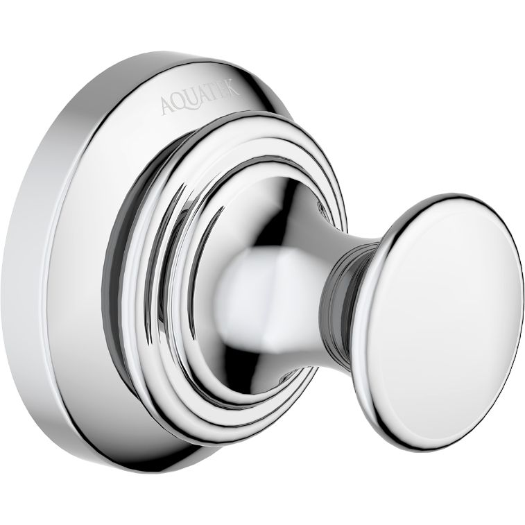 Крючок Акватек Классик AQ4501CR — это стильное и практичное решение для вашей ванной комнаты, которое сочетает в себе элегантный дизайн и высокую функциональность. Изготовленный из высококачественной латуни, он способен выдержать ежедневные нагрузки, оставаясь при этом надежным и долговечным элементом интерьера. Глянцевая хромированная поверхность не только придаёт изделию современный вид, но и обеспечивает защиту от коррозии, делая его идеальным для использования во влажных условиях ванной комнаты.