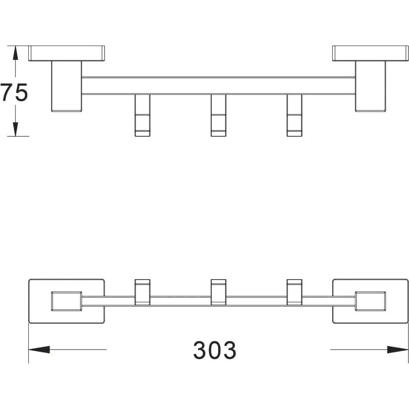 Крючок BELZ B902 B90215-3 имеет следующие габариты: 30.3 см в ширину, 3.5 см в высоту и 7.5 см в глубину. Выполнен из нержавеющей стали, обеспечивающей устойчивость к коррозии, что особенно актуально в условиях ванной комнаты. Глянцевая поверхность добавляет шарм и подходит под хромированные элементы интерьера. Произведено в Китае и сопровождается гарантией на 1 год.