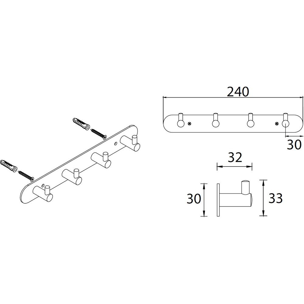 Крючок Fixsen Hotel FX-31005-4 имеет размеры 24x3.3x3.2 см, изготовлен из нержавеющей стали с глянцевым никель-хромовым покрытием, что делает его устойчивым к влажности и агрессивной среде в ванной комнате. Произведено в Чехии, данное изделие имеет пятилетнюю гарантию, что подтверждает его высокое качество.