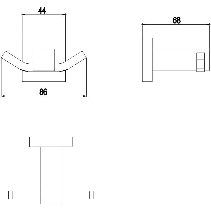 Крючок имеет компактные размеры: ширина 8.6 см, высота 4.4 см и глубина 6.8 см, что делает его идеальным для любых ванных комнат, даже с ограниченным пространством. Он изготовлен из латуни с матовой отделкой для обеспечения долговечности и стиля.