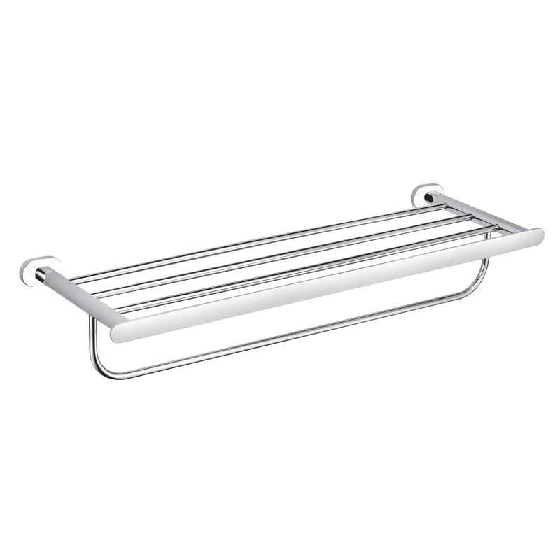 Эта полка для ванной имеет размеры 66.56x21.63x12.35 см, что делает ее идеальной для любых ванных комнат. Изготовлена из латуни с глянцевой отделкой, она легко вписывается в интерьер благодаря стильному белому и хромированному исполнению. Функциональность обеспечивается полотенцедержателем, который сохраняет ваши полотенца всегда под рукой.