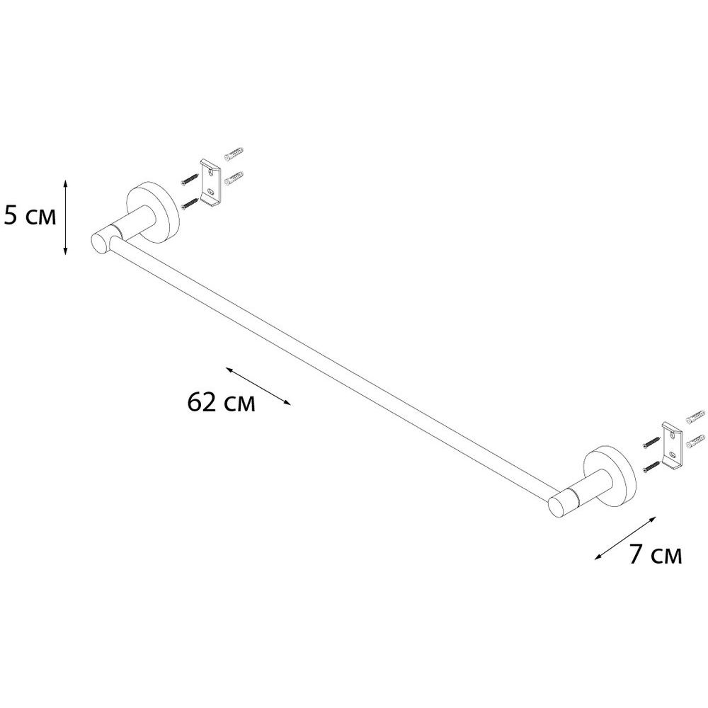 Полотенцедержатель размером 62x5 см создан из прочной стали с никельно-хромовым покрытием, что придаёт ему глянцевый блеск и защиту от ржавчины. Его элегантный дизайн делает его подходящим для большинства интерьерных стилей.