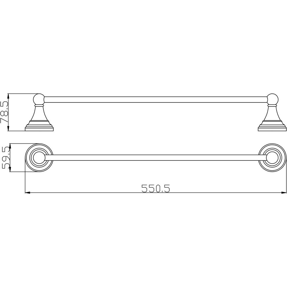 Полотенцедержатель имеет ширину 55,05 см и высоту 5,95 см, что позволяет разместить его в ограниченном пространстве. Глянцевое хромированное покрытие придаёт изделию изысканный блеск, который украсит вашу ванную. Основа из латуни обеспечивает прочность и устойчивость к коррозии, гарантируя продолжительный срок службы.