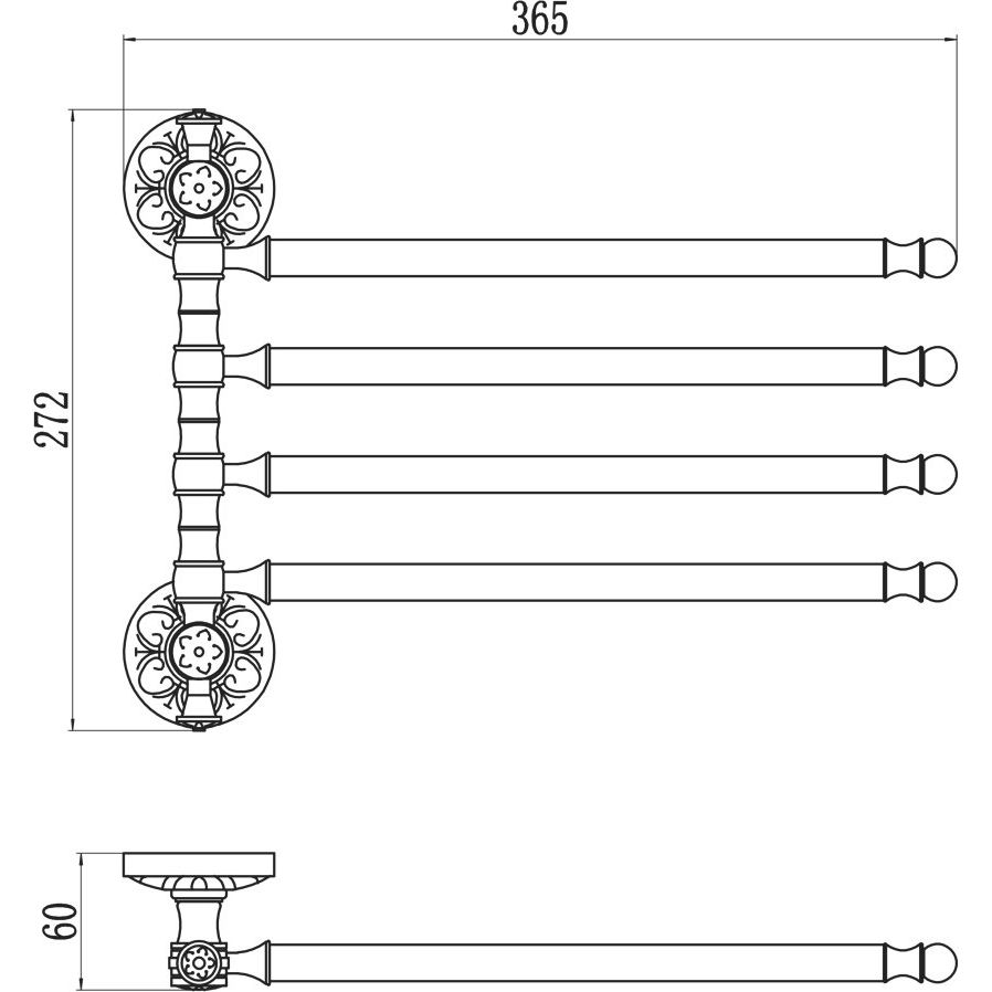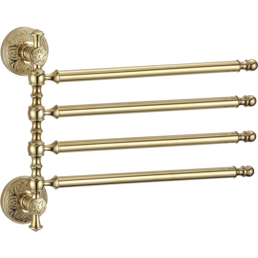 Полотенцедержатель имеет компактные размеры: ширина — 36,5 см, высота — 27,2 см, что позволяет ему легко вписаться в любое пространство. Изделие изготовлено из высококачественной латуни с глянцевым покрытием, добавляющим изысканный блеск. Поворотный механизм обеспечивает гибкость в размещении полотенец, что делает его идеальным решением для небольших ванных комнат.