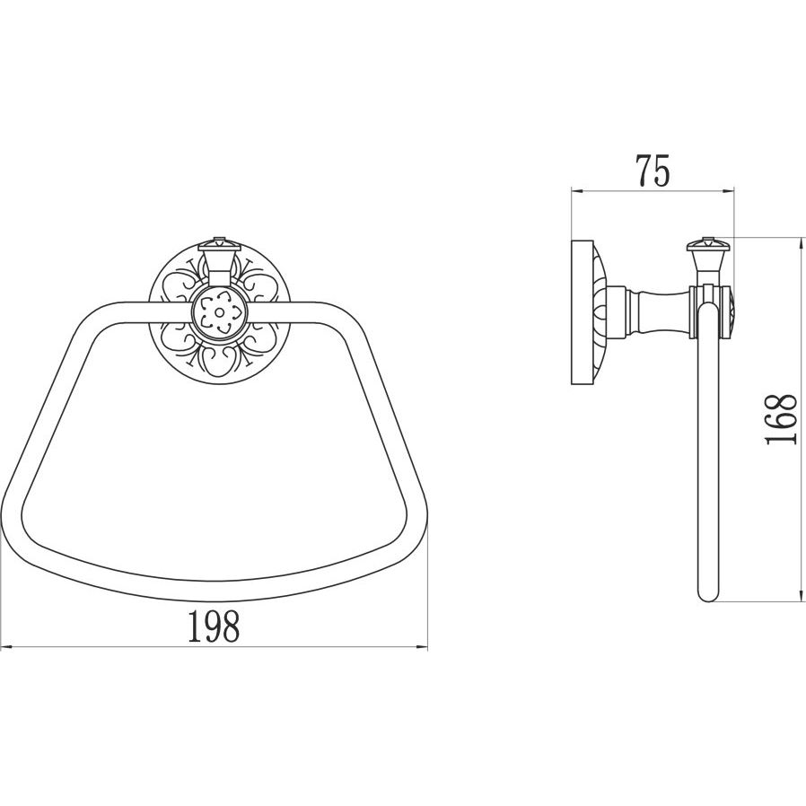Полотенцедержатель имеет компактные размеры 19,8x16,8 см, что идеально подходит для небольших пространств. Благодаря использованию высококачественной латуни с глянцевым покрытием, он не только эстетичен, но и практичен в использовании, устойчив к коррозии и внешним воздействиям.
