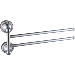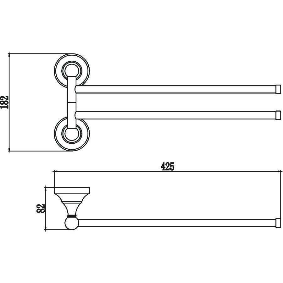 Данный полотенцедержатель имеет размеры 42,5x18,2 см, что позволяет компактно разместить его даже в небольшой ванной комнате. Изготовленный из латуни, он обеспечивает надежность и долговечность, а глянцевое хромовое покрытие придает изделию элегантный вид. Поворотный механизм даёт возможность разместить полотенца в удобной для вас позиции.