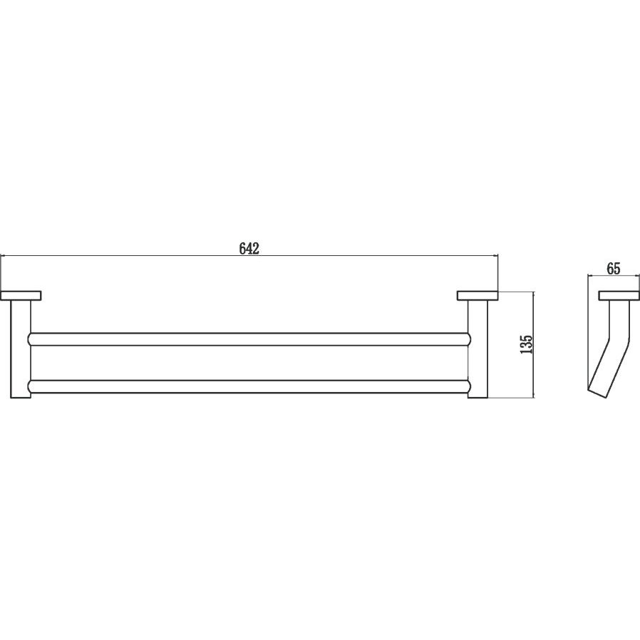 Данный полотенцедержатель представлен в размерах: ширина 64,2 см и высота 13,5 см, что делает его подходящим для разных типов ванн комнат. Материал изготовления — латунь, что обеспечивает прочность конструкции, а глянцевая отделка добавляет визуальной привлекательности. Страна изготовления — Китай.