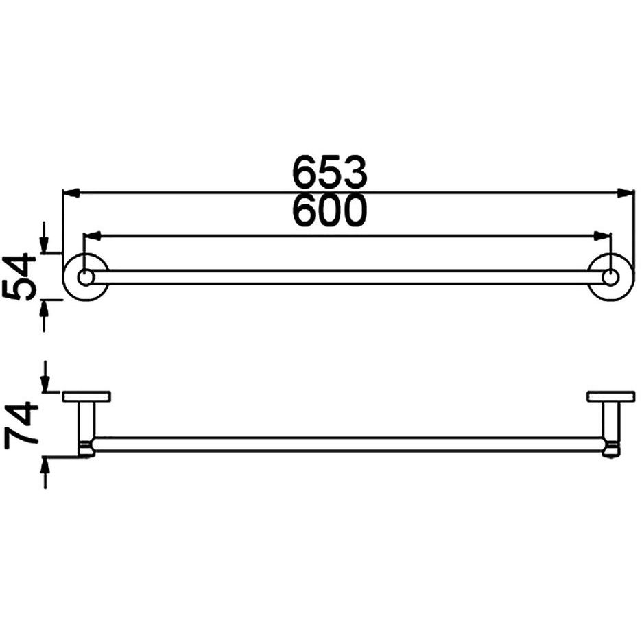 Этот полотенцедержатель имеет внушительные размеры, удобные для размещения как крупных банных полотенец, так и небольших аксессуаров. Ширина изделия составляет 65,3 см, а высота — 5,4 см. Изготовленный из прочной латуни с матовой отделкой, держатель устойчив к воздействию влаги и не подвержен ржавчине, что гарантирует долгий срок службы и сохранение первоначального внешнего вида.