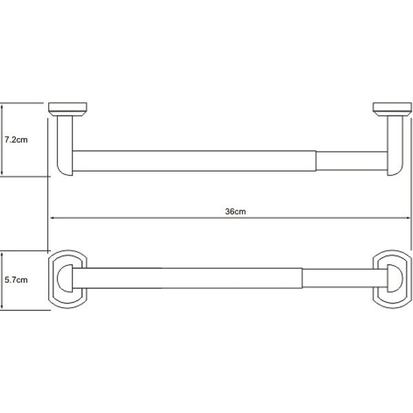 - Габариты полотенцедержателя составляют 36 см в ширину и 5,7 см в высоту, что позволяет экономить пространство и делать использование максимально удобным.