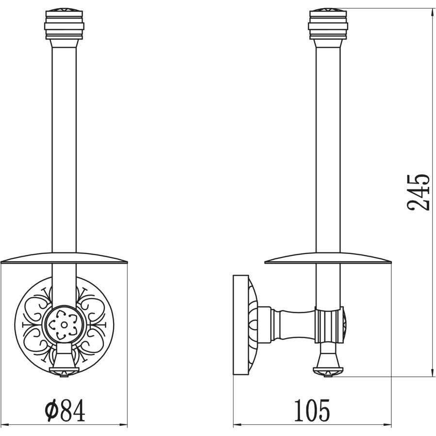 Держатель для запасных рулонов Savol 58 а имеет компактные размеры: ширина 8.4 см, глубина 10.5 см и высота 24.5 см, что позволяет ему идеально вписываться в любое пространство. Изделие подвесное, выполнено из прочной латуни и покрыто глянцевым хромом, обладая гарантийным сроком службы в 5 лет.