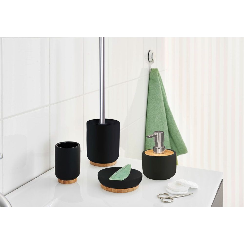 Ершик Ridder Fancy 2126410 черный — это стильный и функциональный аксессуар для вашей ванной комнаты. Созданный в Германии из качественных материалов, он воплощает в себе ортодоксальность и современный дизайн. Этот ершик выполнен с комбинацией из нержавеющей стали, бамбука и фаянса, что придает ему долгий срок службы и элегантный вид. Идеальное решение для поддержания чистоты и порядка.