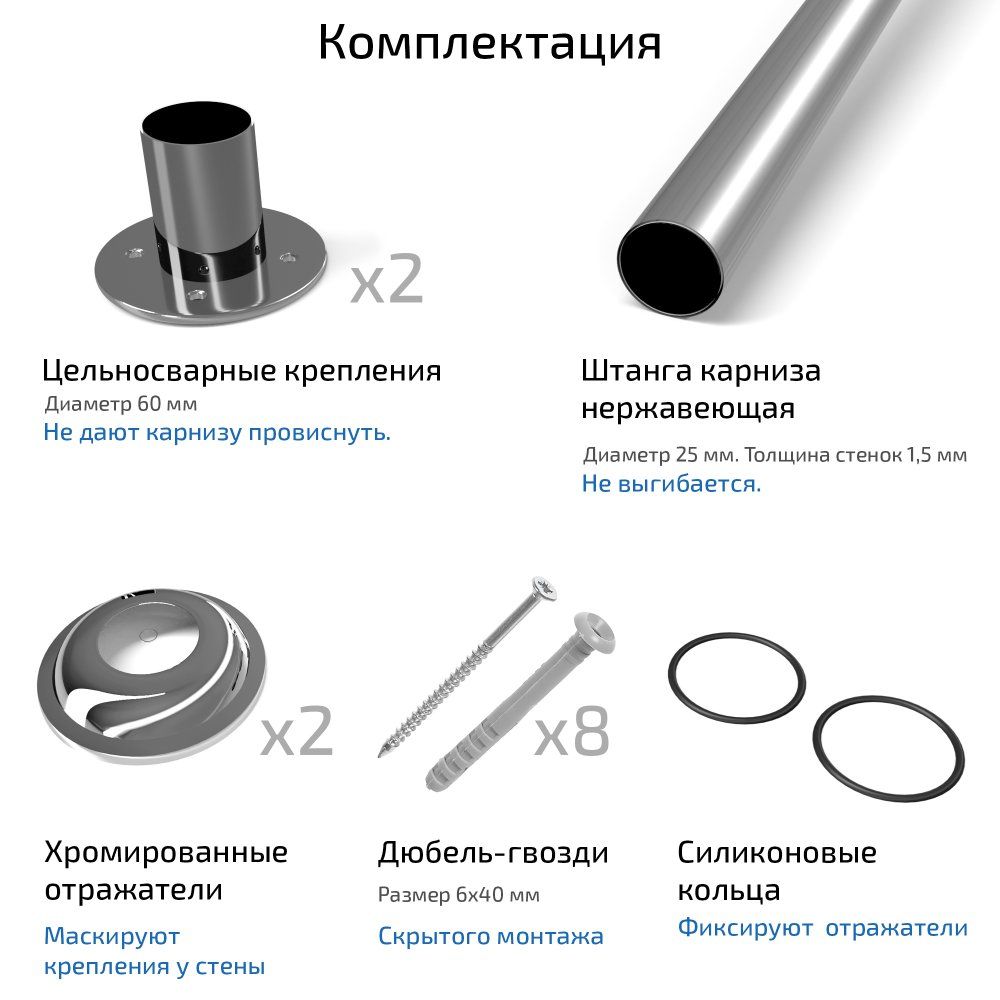 - Долговечность материалов — карниз выполнен из нержавеющей стали.