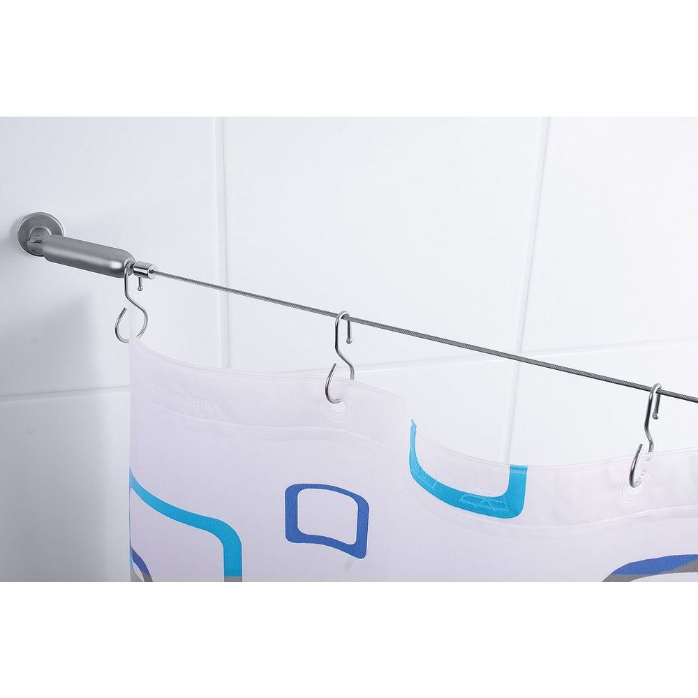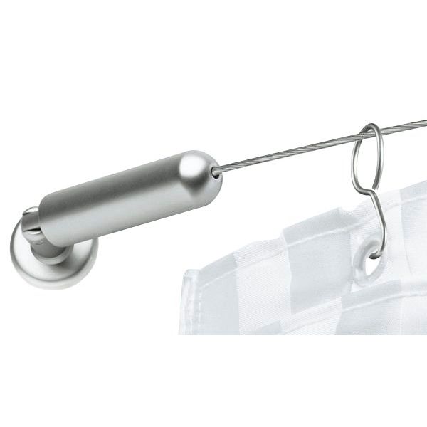 Карниз имеет максимальную ширину в 300 см при основании крепления в 3 см. Диаметр троса составляет 20 мм, что обеспечивает достаточную устойчивость. Благородный хромированный глянец добавляет модный акцент в интерьере ванной комнаты. Изготовлено в Германии, что подтверждает высокие стандарты качества. На продукт распространяется гарантия сроком в 3 года.