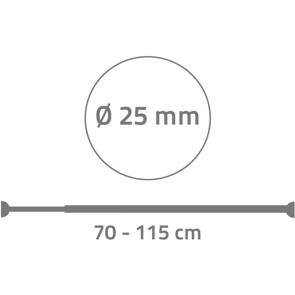 Телескопический карниз Ridder Wien 55111 черного цвета имеет ширину 115 см и диаметр 2.5 см. Диапазон регулировки от 70 до 115 см позволяет адаптировать карниз к различным размерам ванны. Благодаря использованию алюминия карниз является легким и прочным. Изделие производится в Германии и обладает глянцевым покрытием для дополнительной привлекательности. Гарантийный срок составляет 1 год.