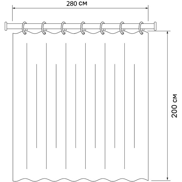 Обратите внимание, что крючки или кольца для подвешивания данной шторы необходимо приобретать отдельно. Также учитывайте, что благодаря утяжелительной цепочке штора надежно фиксируется на месте, что исключает возможность образования складок. При выборе позиции для установки обратите внимание на высоту и ширину вашей ванной для идеального соответствия шторе размера 280х200 см.