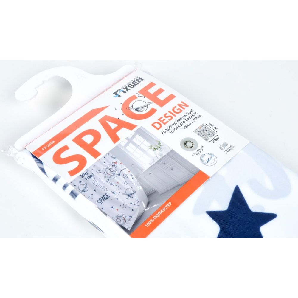 Штора Fixsen 2500 Space FX-2508 имеет размеры 180 на 200 см, что позволяет полностью закрыть стандартное пространство душевой кабины или ванны. Изготовлена из плотного полиэстера с плотностью ткани 100 г/кв.м, что обеспечивает ее прочность и долгий срок службы. В верхней части шторы расположены 12 готовых отверстий с металлическими люверсами, обеспечивающими дополнительную износостойкость. Крючки и кольца для крепления необходимо приобретать отдельно. Возможна машинная стирка.