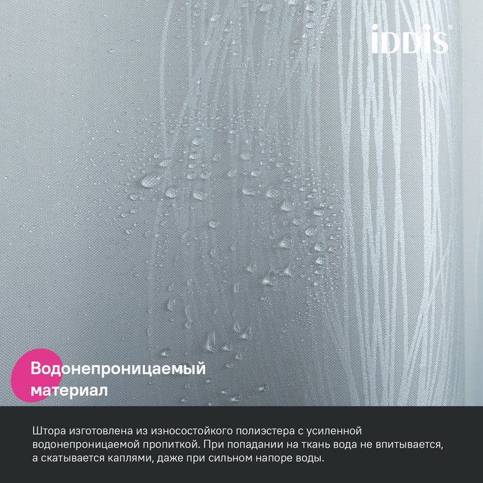 Откройте для себя идеальное сочетание функциональности и стиля с шторой для ванной IDDIS Base BD05P18i11. Выполненная из высококачественного плотного полиэстера, эта штора станет надежной защитой вашей ванной комнаты от брызг и влаги. Благодаря водоотталкивающей пропитке, все ваши заботы о плесени и мокрых пятнах останутся в прошлом. Вода буквально скатывается с ткани, предотвращая её пропитывание даже при сильном напоре.