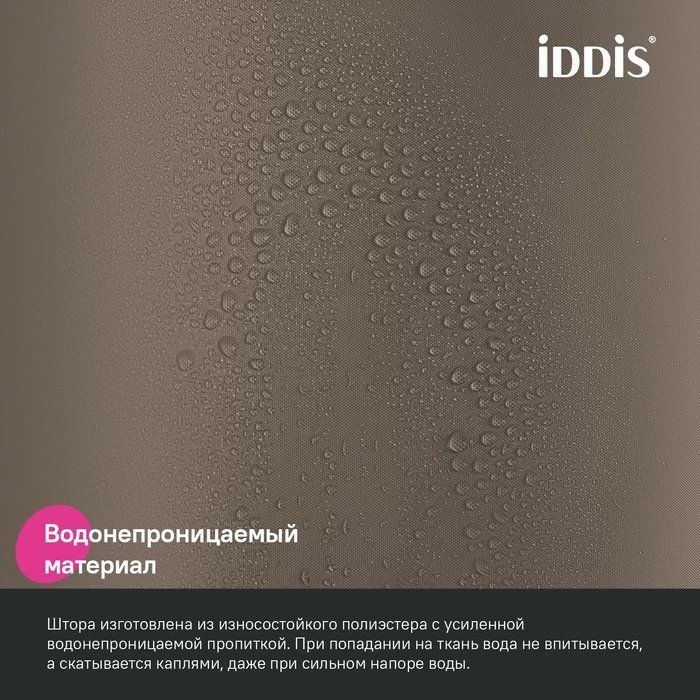 Штора для ванной комнаты IDDIS Base BL03P24i11 — это не просто стильный элемент вашего интерьера, но и практичное решение для поддержания чистоты и уюта в вашей ванной комнате. Изготовленная из износостойкого полиэстера с водоотталкивающей пропиткой, эта штора надежно защищает пространство от влаги, сохраняя его в сухости даже при сильном напоре воды. Элегантный коричневый цвет и утяжеляющая нить по нижнему краю придают изделию изысканный вид и обеспечивают его надежное положение во время использования.