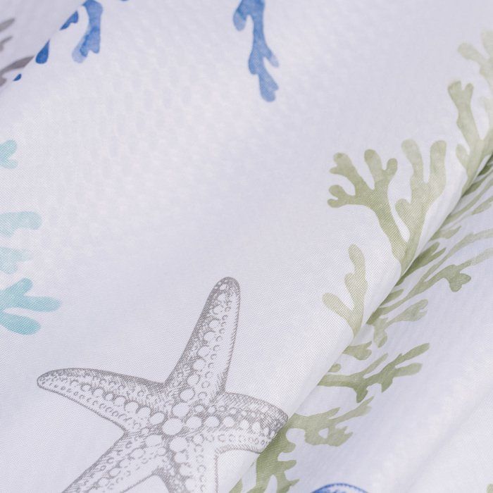 Перед приобретением учтите, что в комплект уже входят крючки/кольца, поэтому вы сможете легко установить штору без дополнительных затрат и сложностей. Обработка ткани предотвращает образование пятен, а полиэстеровая структура гарантирует долговечность. Убедитесь, что размеры шторы подходят под вашу ванную, чтобы избежать замены товара.