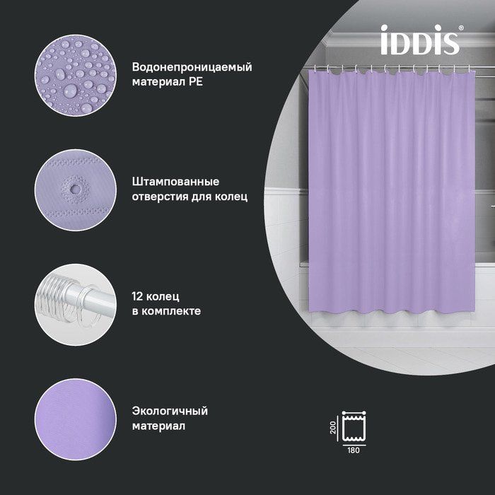 Штора для ванной IDDIS Promo P08PE18i11 – это идеальное сочетание функциональности и стиля для вашей ванной комнаты. Светло-фиолетовый оттенок добавляет нежности и уюта, создавая расслабляющую атмосферу. Изготовленная из высококачественного термопласта PEVA, штора обеспечивает надежную защиту от водяных брызг и долговечность использования.