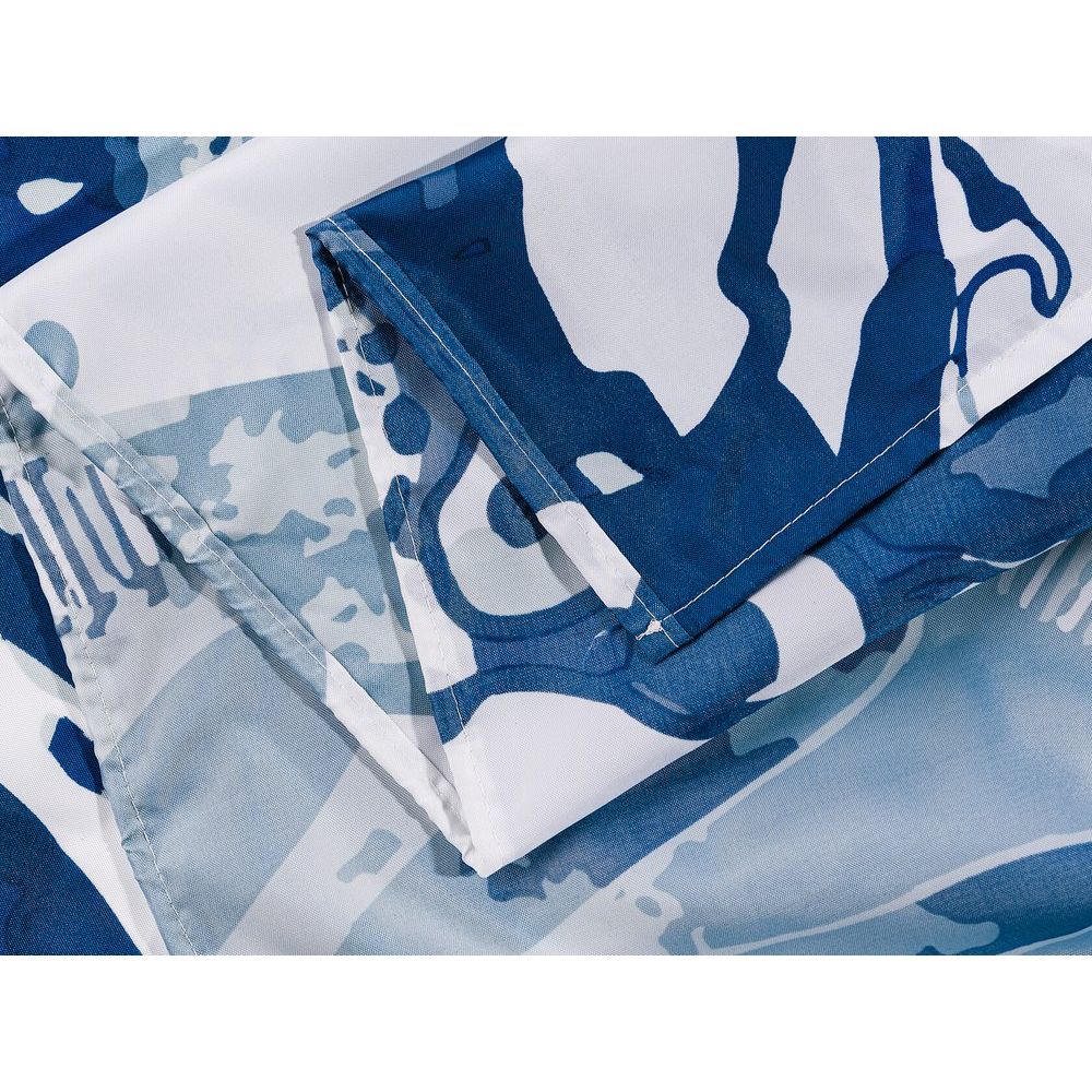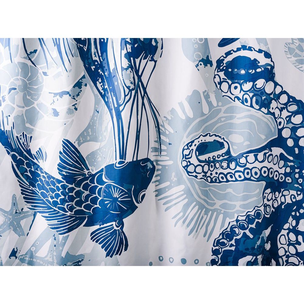 Штора для ванной имеет размер 180x200 см, что позволяет ей идеально закрывать стандартные ванны. Она изготовлена из полиэстера и оснащена 12 готовыми отверстиями для легкого монтажа с помощью специальных крючков или колец, которые приобретаются отдельно. Благодаря специальному покрытию, на материале не остаются следы от капель воды. Как дополнительное удобство, штора оснащена утяжелительным шнуром, а уход за ней невероятно прост — вы можете стирать ее в машине или вручную. Производится в России.