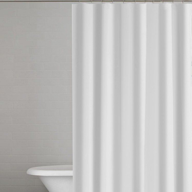 Штора имеет размеры 180x200 см и выполнена из полиэстера, что обеспечивает прочность и износостойкость материала. Готовые отверстия для 12 крючков или колец (приобретаются отдельно) облегчают установку. Специальное покрытие минимизирует следы от высыхающих капель воды. Утяжелительный шнур в нижнем крае препятствует поднятию шторы при использовании душа. Изделие можно стирать в машине, а также гладить при низкой температуре. Производитель предоставляет гарантию на один год.