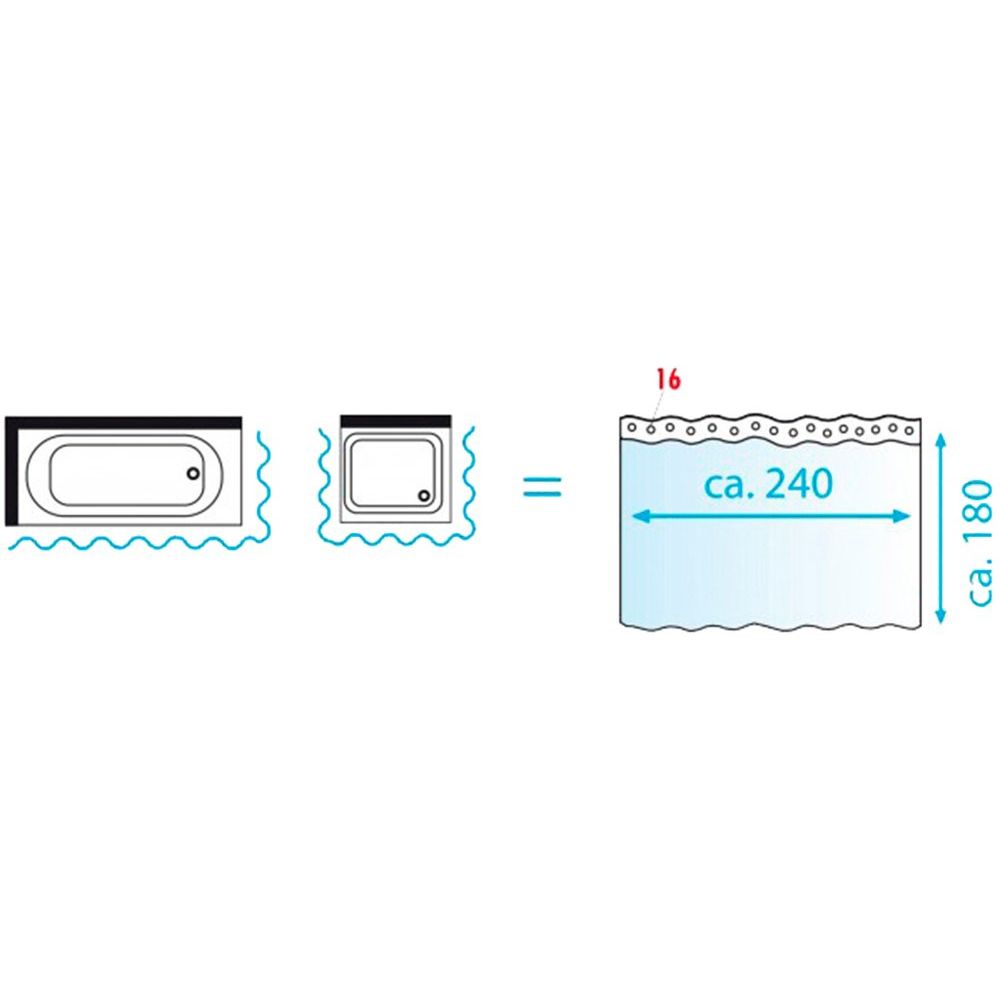 Шторы размеры: 240x180 см, идеально подходят для просторных ванных комнат. Изготовлены из 100% высококачественного полиэстера. Имеется 16 готовых отверстий для быстрого и удобного крепления крючков или колец, которые приобретаются отдельно. Защита от бактерий и пятен от воды сохраняет занавеску чистой и свежей.