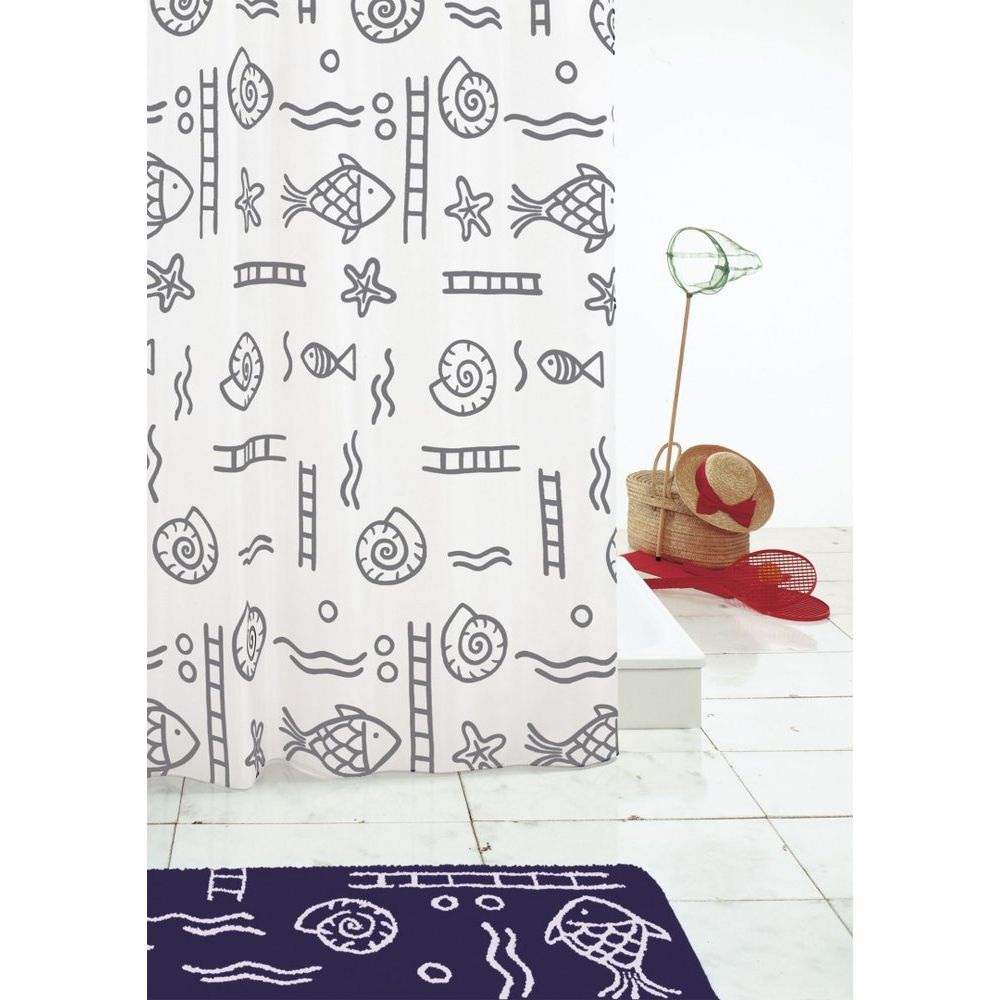 Штора для ванной имеет размеры 240x180 см и выполнена из прочного полиэстера. Она оснащена 16 готовыми отверстиями для крючков или колец, которые приобретаются отдельно. Утяжелительный шнур на нижнем крае гарантирует оптимальное расположение и предотвращает излишние движения. Изделие допускает машинную стирку и требует минимального ухода благодаря специфическим покрытиям, предотвращающим образование пятен и бактерий.