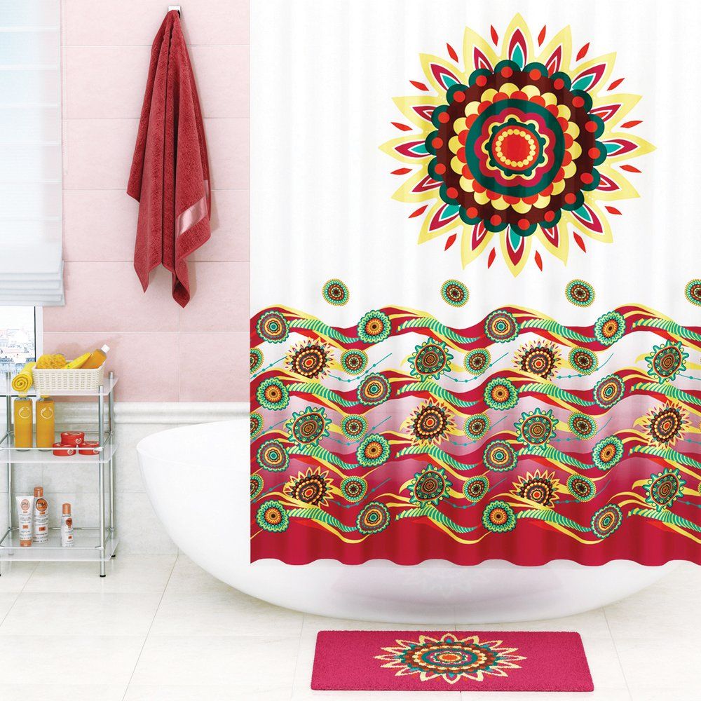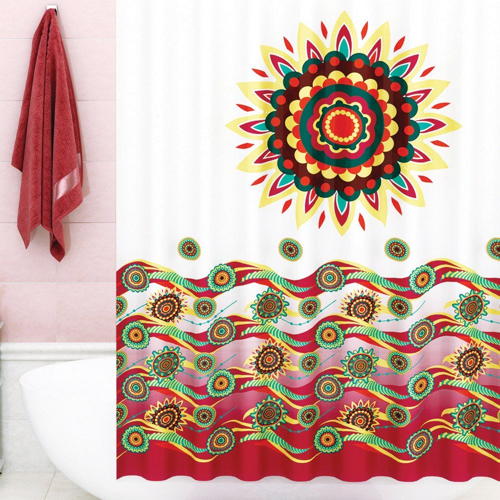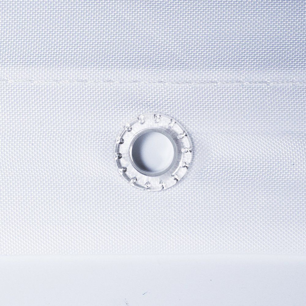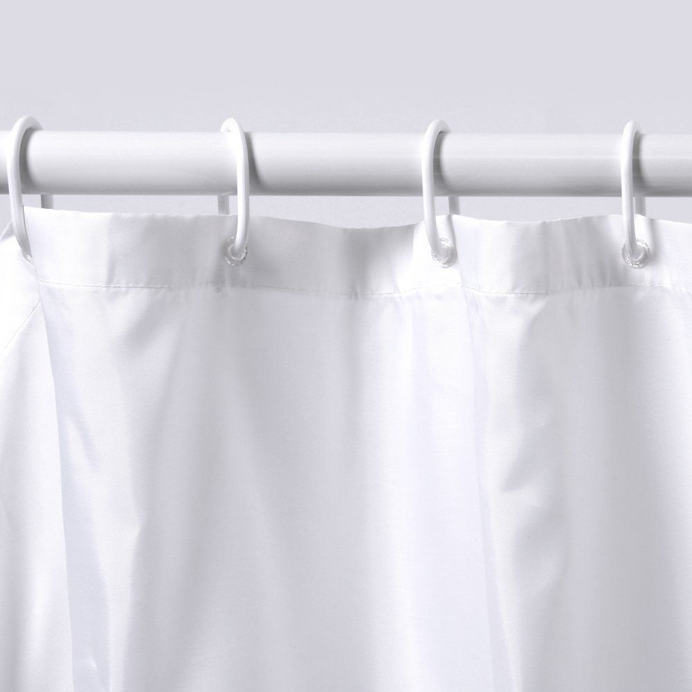 Полиэстеровая штора размером 180x200 см легко справляется с защитой от брызг, благодаря плотности ткани 90 г/кв.м. Двенадцать готовых отверстий для крючков или колец упрощают установку. Белые кольца входят в комплект, как и люверсы, которые защищают материал от повреждений при максимальных нагрузках. Благодаря специальному покрытию, следы от высохших капель воды остаются практически незаметными. Утяжелительный шнур по низу изделия предотвращает его сморщивание, что обеспечивает идеальный вид шторы.