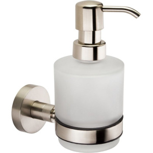 Дозатор имеет компактные размеры 7x12x15 см, что позволяет легко разместить его в любом уголке ванной комнаты. Объем составляет 0.35 литра, что достаточно для длительного использования без частого пополнения. Изготовлен из прочной латуни и стекла, с матовым покрытием, обеспечивающим дополнительную защиту и эстетическую привлекательность. Устанавливается на стену рядом с раковиной, что делает его удобным в использовании и поддерживает порядок на вашей полке.