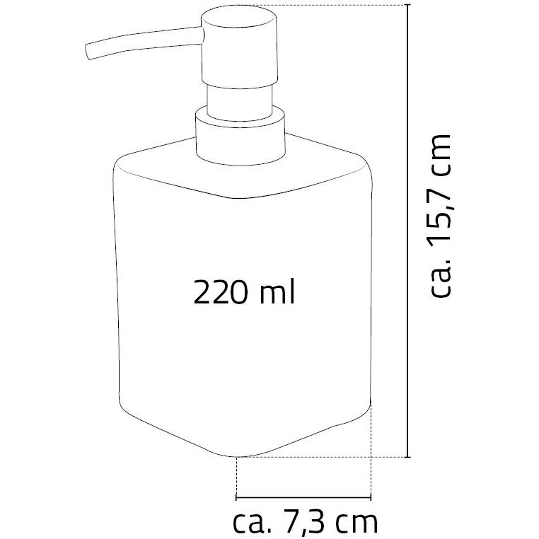 Дозатор Ridder Zelda 2169509 имеет компактные размеры 7.3x7.3x15.7 см, что прекрасно сочетается с любыми раковинами. Его объём составляет 0.22 литра, достаточно для регулярного использования в домашних условиях. Настольная конструкция обеспечивает лёгкость установки, без необходимости в дополнительных креплениях или инструментах. Материал исполнения — пластик и полирезин, которые отлично переносят влажность и легко очищаются от загрязнений.