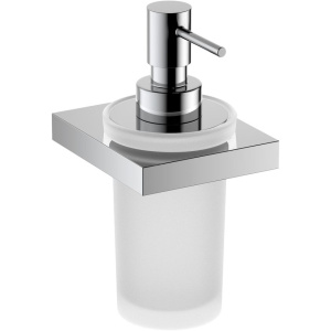 Дозатор Timo Petruma обладает размерами 8x10.7x16.3 см и рассчитан на объем 0.2 литра, что делает его компактным и практичным для ежедневного использования. Подвесная установка позволяет легко закрепить устройство на стене рядом с раковиной, обеспечивая удобный доступ. Комбинация латунного корпуса и стеклянной отделки создаёт гармоничную визуальную композицию с хромированным покрытием.