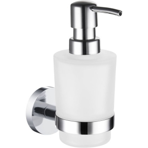 Дозатор Timo Saona 13039/00 имеет размеры 6.7x12.1x15.8 см и объем 0.3 литра, что делает его достаточно компактным для подвесного размещения. Подходит для установки на раковину. Выполнен из комбинации прочной латуни и стекла, предлагается в варианте с глянцевым или матовым покрытием.