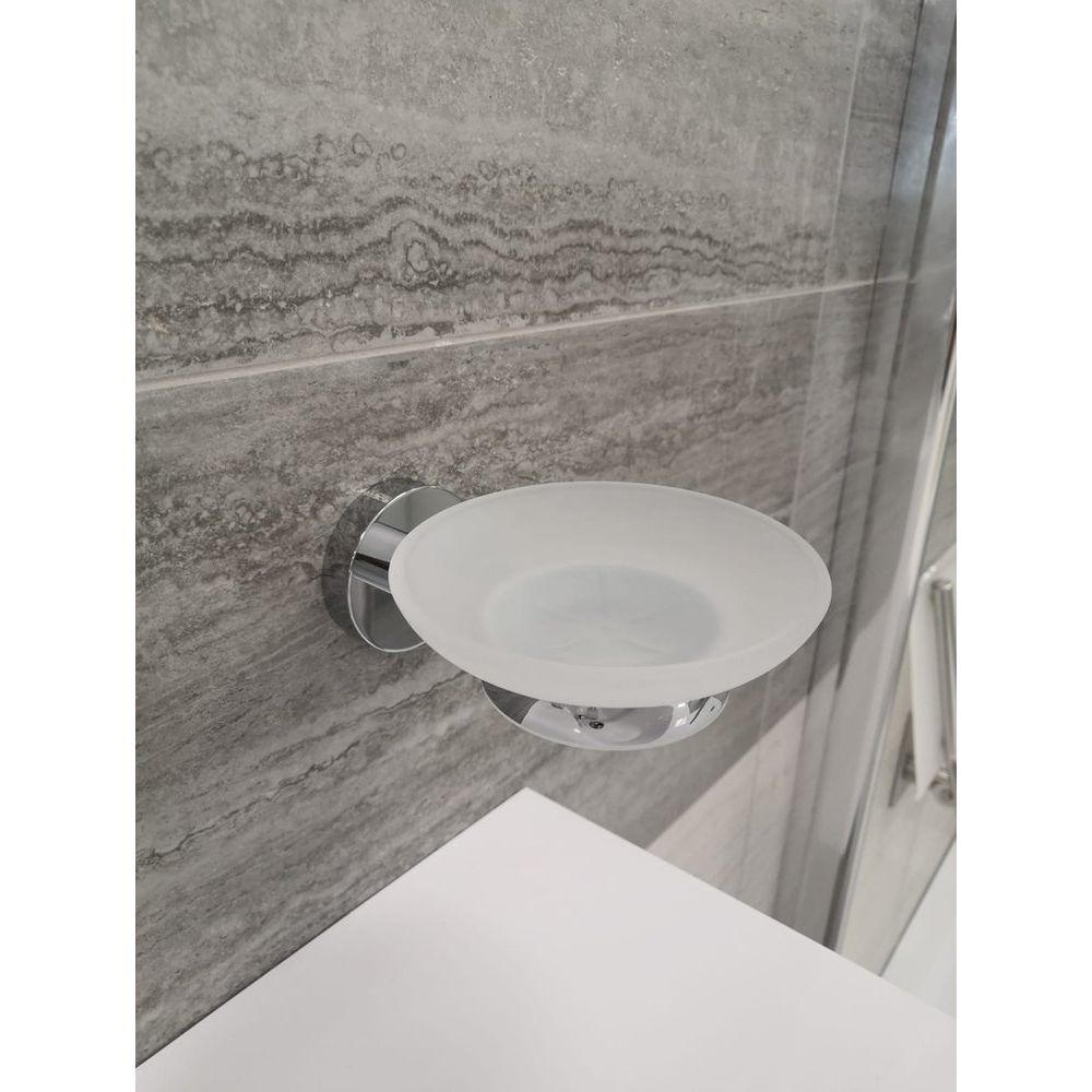 Мыльница имеет компактные размеры: ширина 11 см, глубина 11.8 см и высота 5.3 см, что делает её подходящей для любых ванных комнат. Она подвесная, что экономит полезное пространство. Сочетание латуни и стекла в конструкции обеспечивает прочность и стильный вид. Возможны варианты глянцевой и матовой отделки для идеального сочетания с интерьером.
