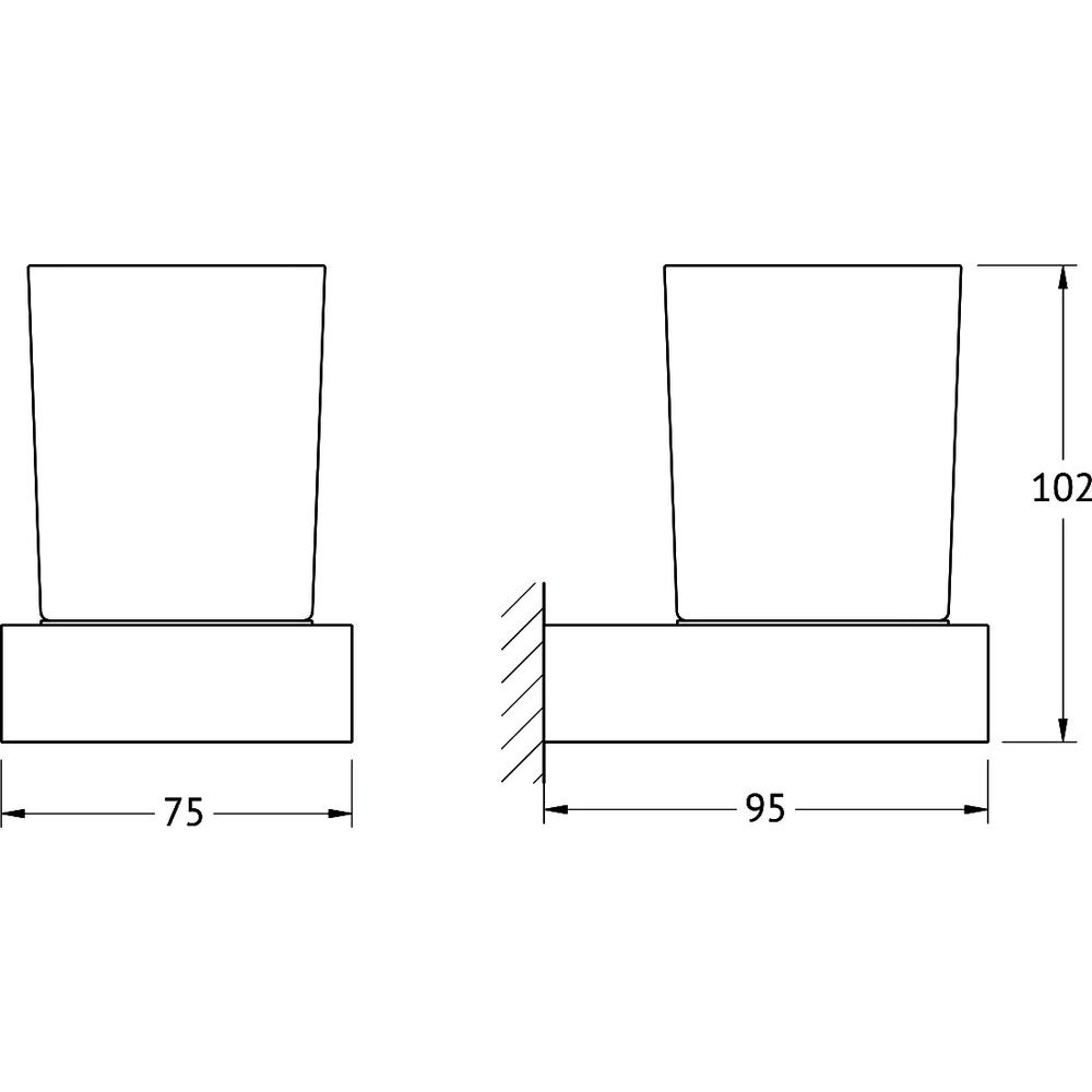 Размеры стакана составляют 7.5 см в ширину, 9.5 см в глубину и 10.2 см в высоту. Изделие подвесное, включает элементы из латуни и стекла, доступно в матовом и глянцевом исполнении. Производится в Германии, что гарантирует высокое европейское качество.