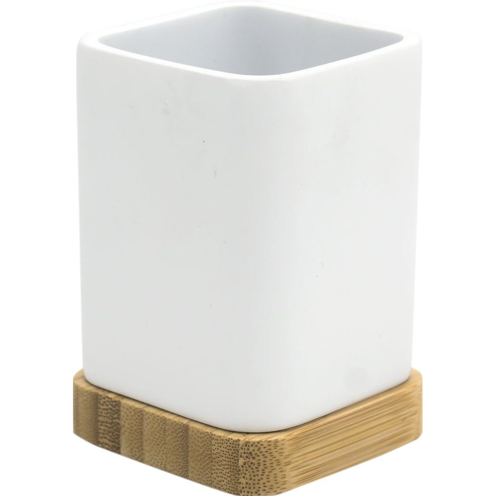 Стакан из коллекции Amara бренда Ridder имеет габариты 6.9 x 6.9 x 10 см, что делает его компактным и удобным в использовании. Изготовленный из прочного полирезина с элементами из натурального бамбука, этот аксессуар отличается длительным сроком службы. Настольное исполнение обеспечивает легкость размещения на любой поверхности вашей ванной комнаты. На изделие предоставляется гарантия сроком на 1 год.