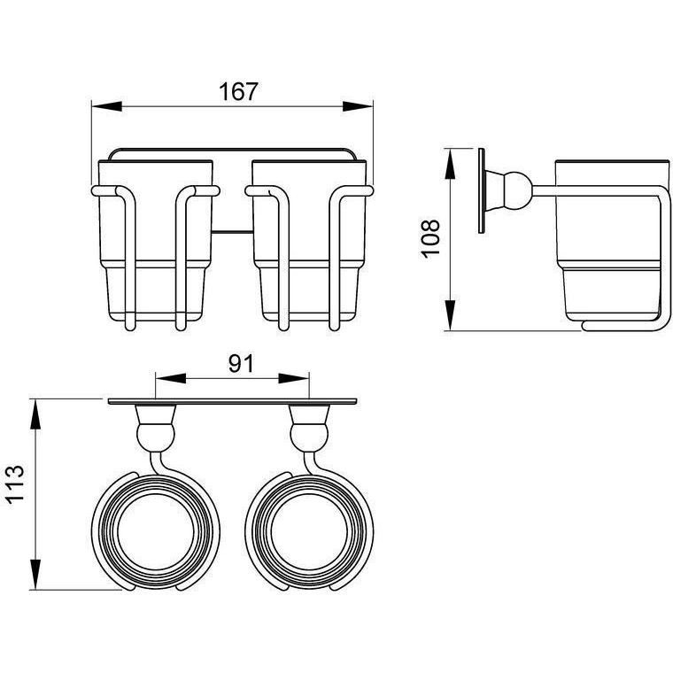 Двойной стакан Timo Nelson имеет габариты 16.7x11.3x10.8 см, что идеально подходит для большинства ванных комнат. Подвесная конструкция позволяет сэкономить место на столешнице и обеспечить удобство использования. Материалы — высокопрочная латунь и матовое стекло, которые не только эстетичны, но и долговечны. Изделие оснащено двумя стаканами, что делает его еще более практичным.