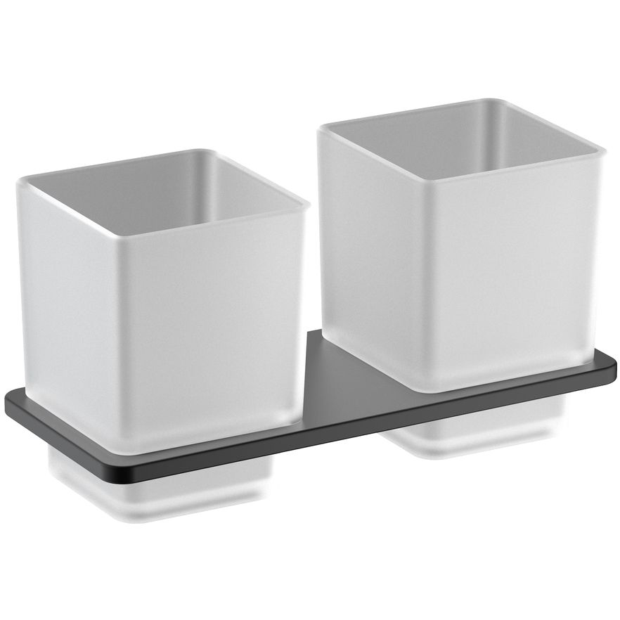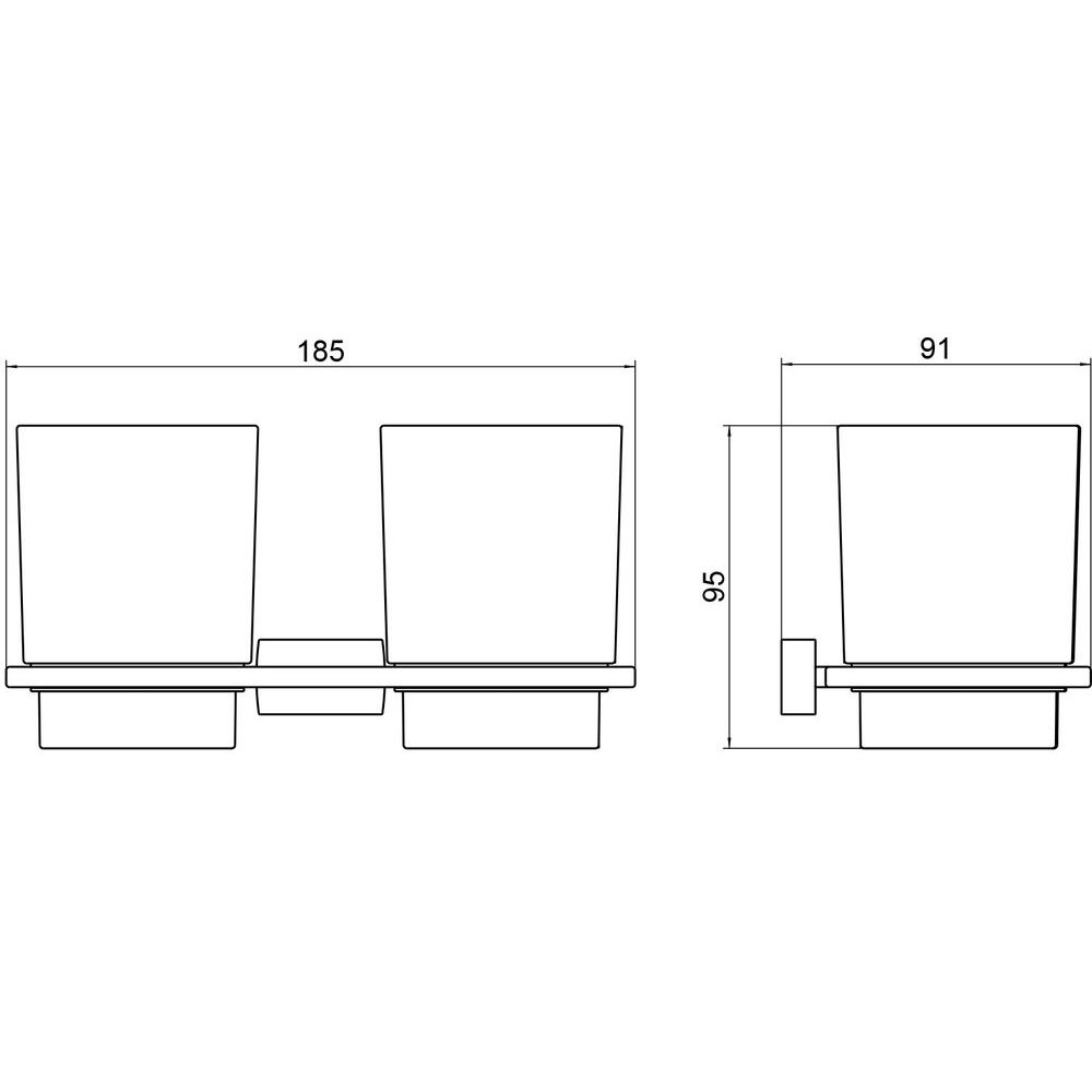 Двойной стакан имеет следующие габариты: ширина 18.5 см, глубина 9.1 см, высота 9.5 см. Выполнен из прочной латуни и матового стекла, обеспечивая долговечность и устойчивость к влаге. Аксессуар подвесного типа, легко монтируется на стену, что позволяет сэкономить пространство.