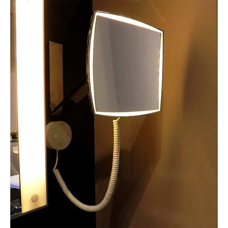 Косметическое зеркало Keuco iLook Move 17613 019000 представляет собой современный аксессуар, который добавляет удобство и функциональность в ваш ежедневный уход за кожей. Это зеркало — идеальный помощник в нанесении макияжа и выполнении других косметических процедур. Дизайн с поворотным и телескопическим механизмом позволяет настроить зеркало в нужное положение, а односторонняя вогнутая поверхность увеличивает изображение в пять раз, облегчая детальное рассмотрение лица. Оснащенное сенсорной панелью управления подсветкой, оно позволяет выбрать освещение от холодных до теплых тонов, обеспечивая идеальные условия для каждой процедуры. Изготовленное из хромированной латуни, зеркало не только привлекательно внешне, но и рассчитано на долгий срок службы. Оно подключается к электропитанию через встроенный трансформатор и спиралевидный кабель.
