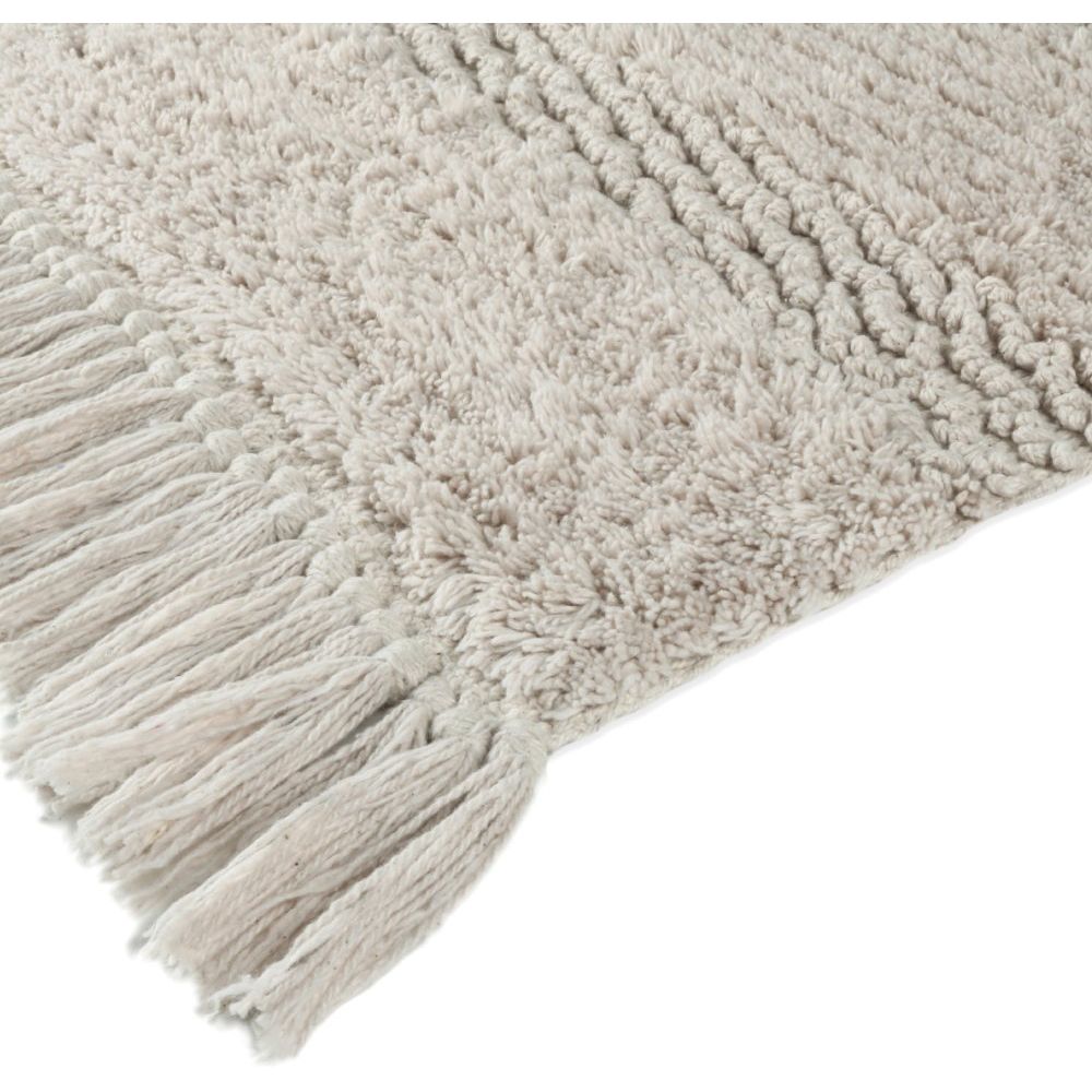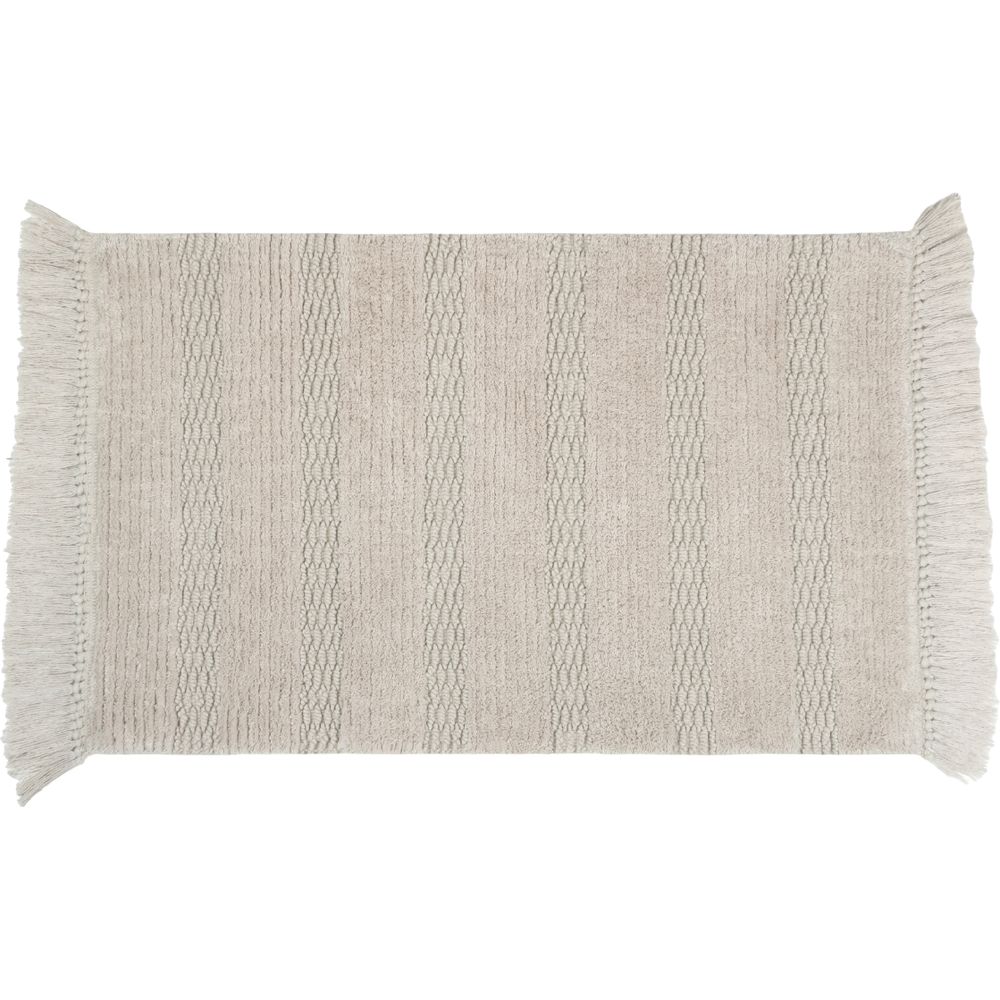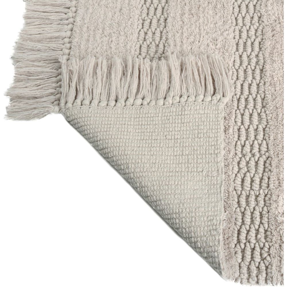 Коврик имеет размер 80х50 см и высоту ворса 10 мм, что обеспечивает комфорт и безопасность. Он полностью сделан из хлопка, что делает его мягким и приятным на ощупь. Коврик не имеет подложки, что позволяет ему быстро высыхать после стирки. Возможно как машинное, так и ручное стирание. Изготовлен в Индии.