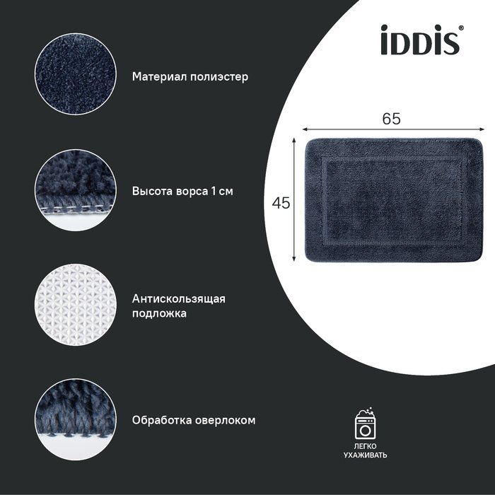 Коврик IDDIS Promo имеет размеры 45x60 см и подходит для использования в ванной комнате. Ворс высотой 1 мм выполнен из полиэстера и микрофибры, что обеспечивает мягкость и прочность покрытия. Основа выполнена из экологичной термопластичной резины (TPR), препятствующей скольжению. Коврик предназначен для стирки в машинке, что значительно упрощает уход за ним, и подходит для использования на теплых полах. Гарантия на изделие составляет 1 год.