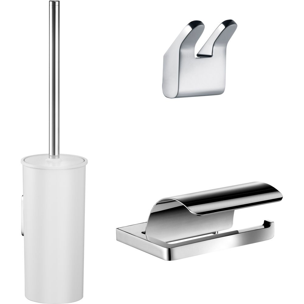 Откройте для себя безупречное сочетание стиля и функциональности с набором Keuco из коллекции Collection Moll. Этот комплект аксессуаров для ванной комнаты включает в себя белый ершик с держателем, изящный держатель для туалетной бумаги и двойной крючок. Каждый элемент олицетворяет немецкое качество и продуманный дизайн, который идеально впишется в любое пространство ванной комнаты.