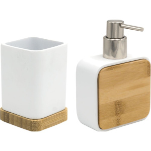 Комплект включает в себя дозатор для мыла Ridder Amara 2244501 и стакан Ridder Amara 2244101. Дозатор, с размерами 10x5x14.5 см и объемом 0.28 л, идеально подходит для установки на раковину, а использование пластикового каркаса в сочетании с бамбуковыми деталями добавляет непревзойденную эко-эстетику. Стакан, размером 6.9x6.9x10 см, тоже изготовлен из полирезина с бамбуковыми элементами, дополняет набор функционально и стилево. Оба изделия – настольные и предоставляются с гарантией на 1 год.