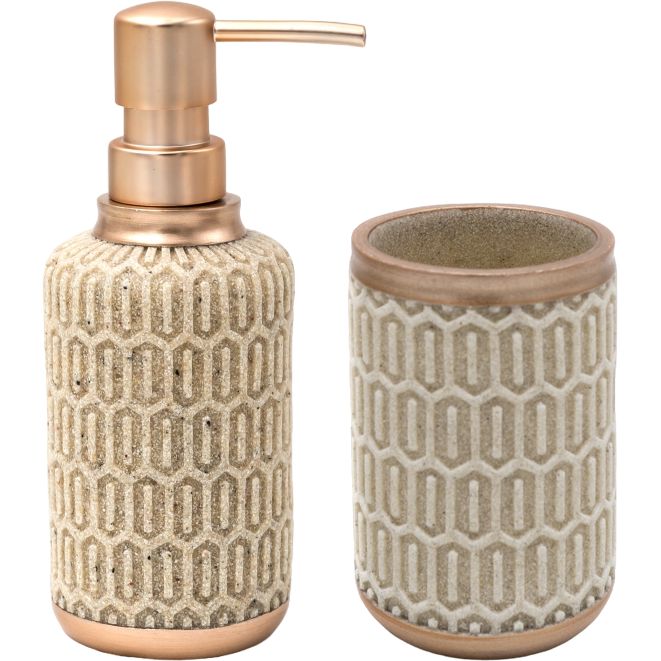 Познакомьтесь с элегантным набором аксессуаров для ванной комнаты от бренда Ridder, коллекция Laila. Этот комплект включает в себя бежевый дозатор для жидкого мыла и стакан, которые гармонично дополнят интерьер вашей ванной комнаты. Дизайн, сочетающий в себе утонченные формы и современные материалы, создает атмосферу комфорта и стиля. Эргономичные аксессуары Ridder Laila подходят для установки на раковину, что делает их функциональным и эстетичным выбором для вашего дома.