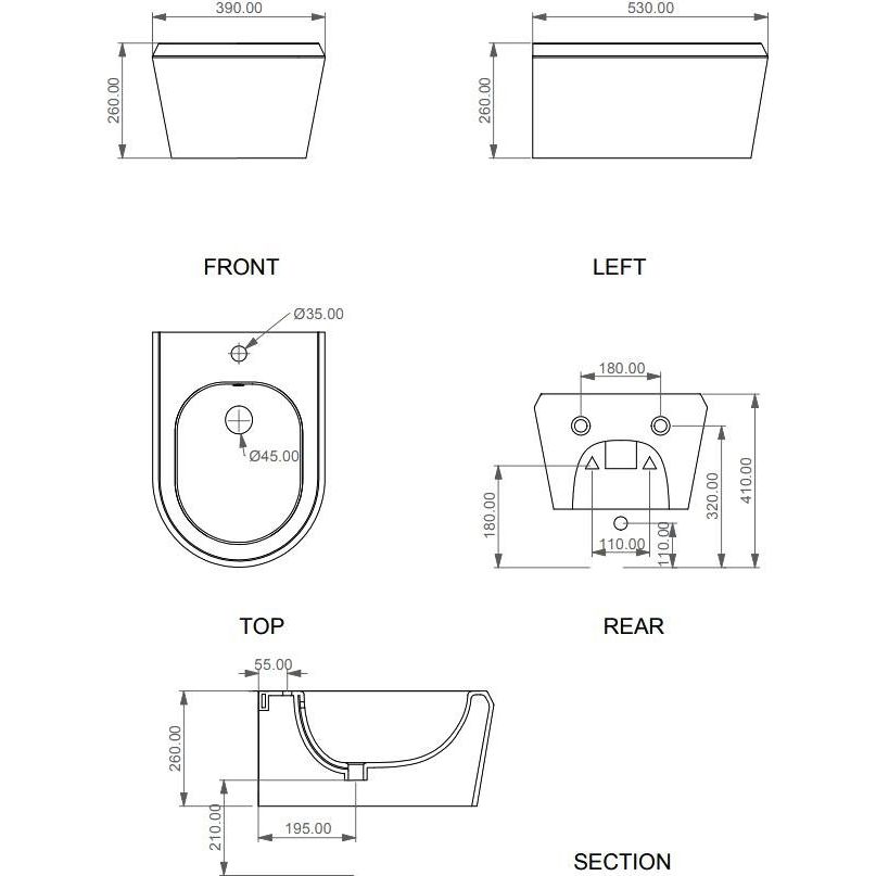 Подвесное биде GSG Cruise CRBISO000 выполнено из высококачественного фаянса, что обеспечивает его прочность и надежность. Габариты изделия составляют 39x53 см, а диаметр слива — 4.5 см. В комплект входит слив-перелив, однако донный клапан потребуется приобрести отдельно. Для установки понадобится система инсталляции. Уникальное антигрязевое покрытие способствует реже производить уборку, а встроенный слив-перелив гарантирует безопасность при переполнении чаши.
