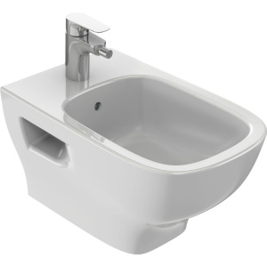 Биде Jacob Delafon Struktura EMC0002 имеет размеры 34x54 см, что позволяет разместить его в любой, даже небольшой ванной комнате. Изделие подразумевает подвесную установку и требует наличия специальной системы инсталляции. В комплект входит слив-перелив с диаметром слива 4.5 см, донный клапан отвечает за удобное управление водными потоками, но его следует приобрести отдельно. Уникальная конструкция биде включает специальную полость для встроенного слива-перелива, обеспечивающее защиту от переполнения чаши.