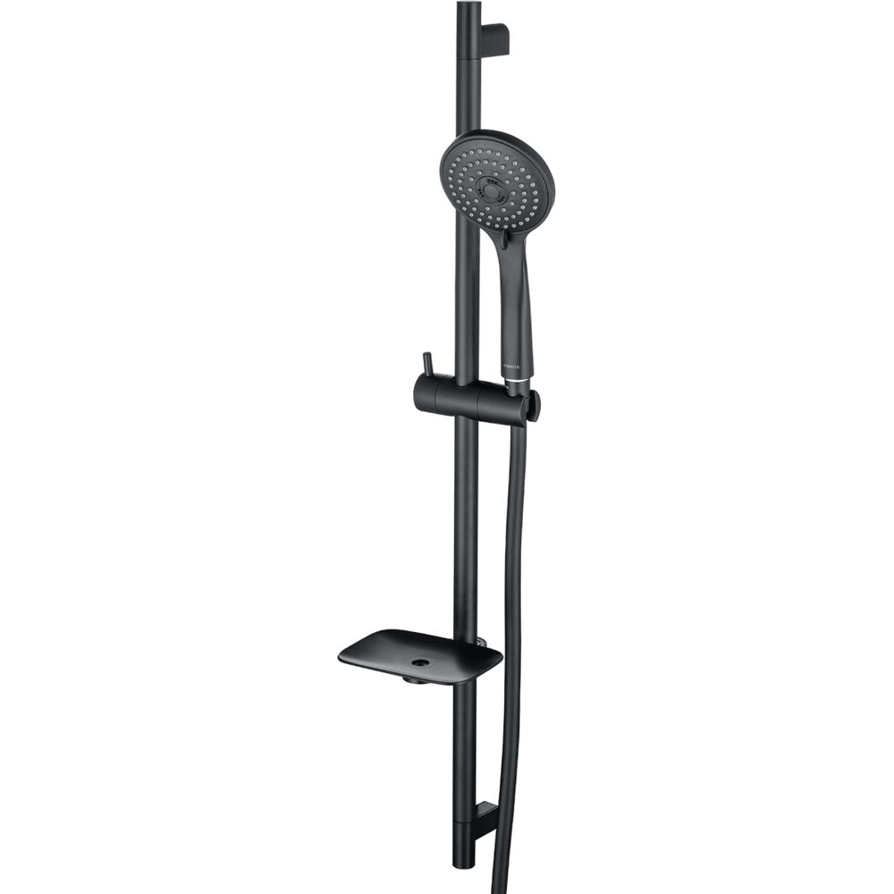 Душевой гарнитур имеет общую высоту 80 см и включает в себя лейку размером 10 см, которая предлагает три режима струи для вашего удовольствия. Шланг из пластика длиной 160 см оснащен системой против известковых отложений и легким очищением от налета, что значительно упрощает уход за изделием. Гарнитур дополнен мыльницей и держателем для удобства использования. Комплектация позволяет легко и быстро установить изделие благодаря продуманной конструкции.