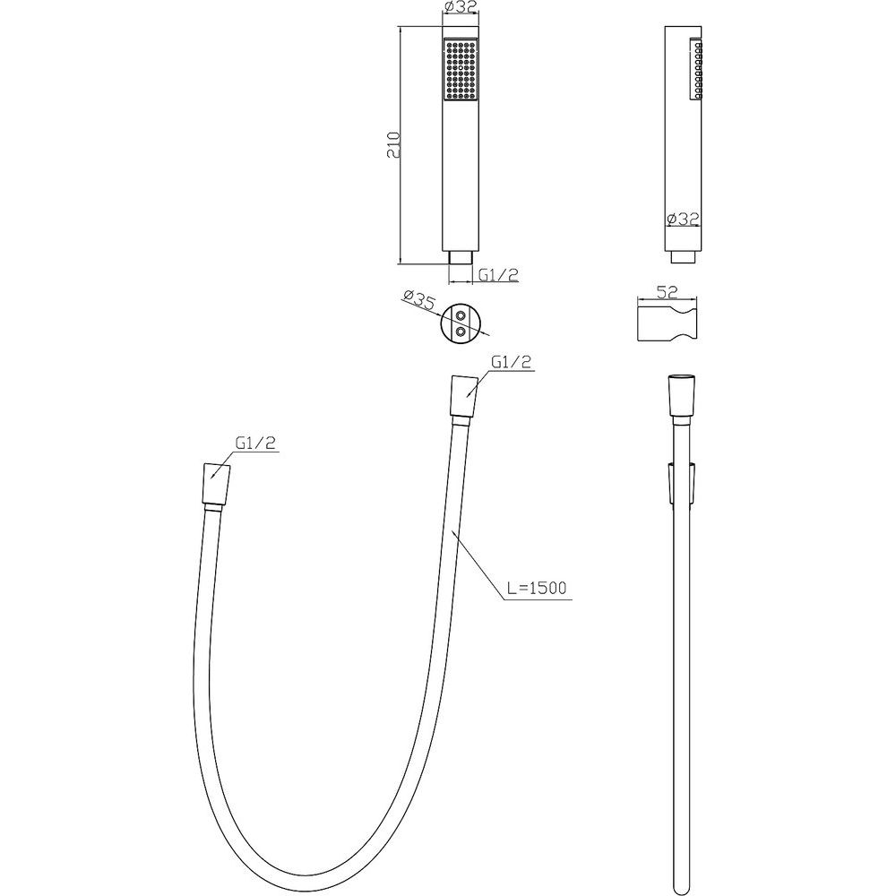 Гарнитур выполнен из прочного пластика и включает в себя лейку диаметром 3.2 см. Высота конструкции составляет 21 см, что вполне достаточно для комфортного использования. Душевой шланг длиной 150 см оснащен поворотными элементами на местах соединений, что предотвращает его перекручивание и повышает долговечность. В комплект входит настенный держатель, позволяющий надежно закрепить лейку в удобном положении.