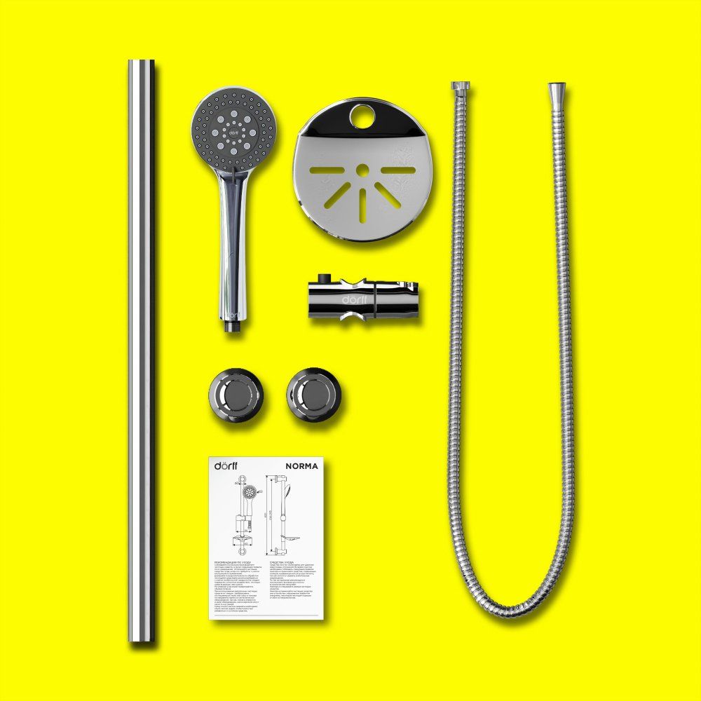 Душевой гарнитур Dorff Norma D0101000 — это элегантное и функциональное решение для вашей ванной комнаты. Благодаря высококачественным материалам и продуманной конструкции, он обеспечивает максимальный комфорт во время использования. Гарнитур сочетает в себе стильный дизайн и передовые технологии, делая вашу ванную комнату местом отдыха и релаксации. Универсальность и простота установки рассчитаны на то, чтобы сделать модернизацию вашего душа быстрой и легкой.
